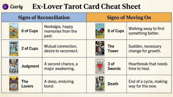 Tarot serves as a powerful mirror for self reflection during the difficult days after past relationship. It helps you see the truth and reclaim your personal power regardless of the outcome. Whether you seek reconciliation or a fresh start these love tarot spreads about ex-partner provide the guidance you need to move forward. Remember that you hold the power to act on these spiritual insights. If you need deeper clarity, try an love tarot reading for ex online at Ceerly to find the light on your journey toward healing.